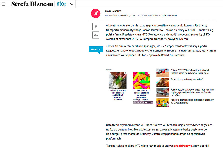 Jedynym wnioskiem, który przychodzi mi do głowy jest to, że naprawdę jest się czym chwalić, ale chwalenie się z pewnością nie leży w mojej naturze. Jednak chciałbym podkreślić, jak dumny jestem z moich pracowników, którzy ciężko pracowali, aby przygotować i wykonać to zadanie transportowe, osiągając tylko pozytywne wyniki od początku do samego końca. Mając powyższe na względzie, spodziewam się świetlanej przyszłości dla naszej firmy.